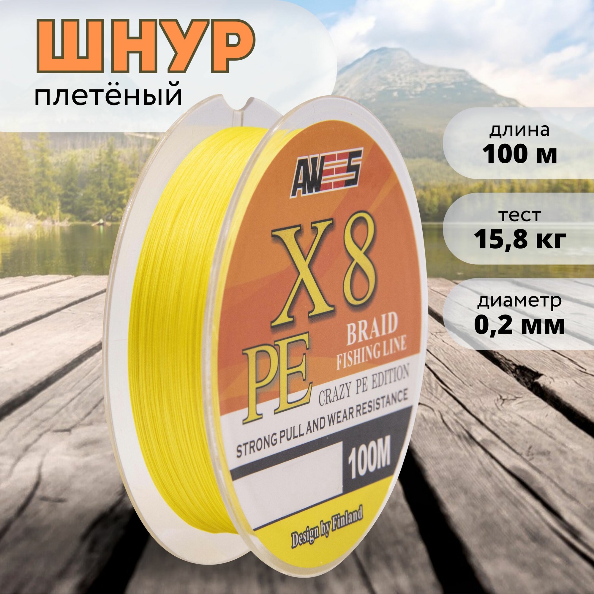 Отзывы на Плетеный шнур 8-жильный AWEES PE-X8 0.20, тест 15.8 кг, 100 м, жёлтый/плетёнка/леска плетеная/леска/шнур для рыбалки