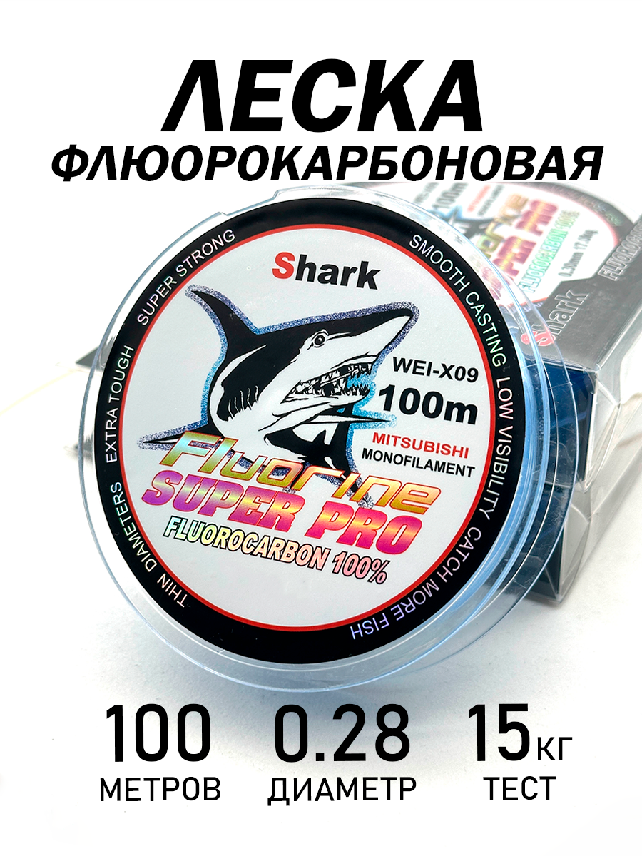 10 цен на Леска флюорокарбоновая, разрывная нагрузка 15кг, диаметр 0,28мм, длина 100м