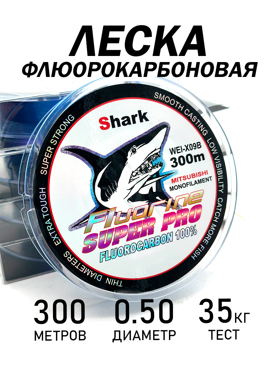 10 цен на Леска флюорокарбоновая, разрывная нагрузка 35кг, диаметр 0,50мм, длина 300м