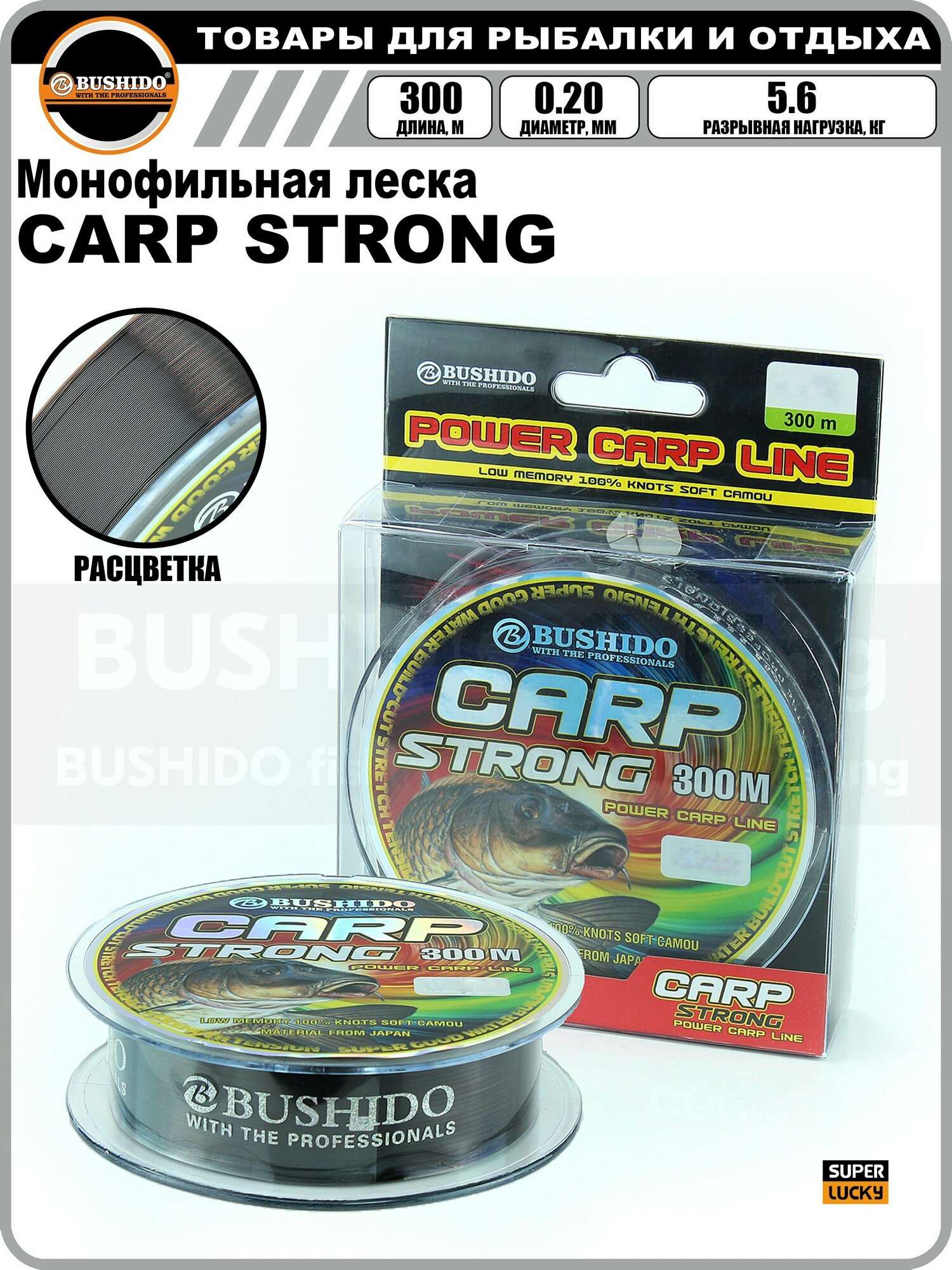 Отзывы на Леска рыболовная BUSHIDO CARP STRONG power carp line (300м); (d - 0,2мм); (тест - 5,6кг)