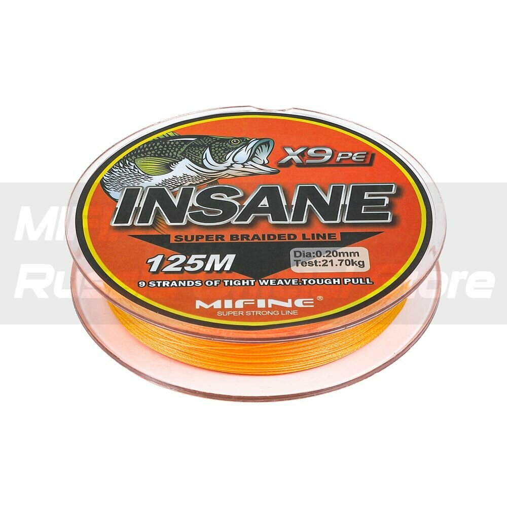Отзывы на Плетеный шнур для рыбалки MIFINE INSANE X9PE (125м); (d - 0,14мм); (тест - 16,5кг)