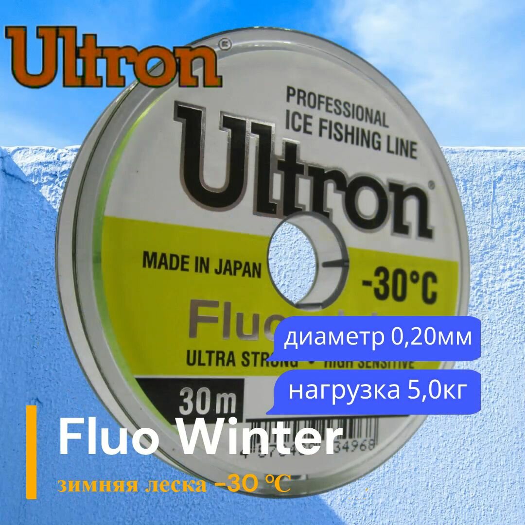 Монофильная леска для рыбалки ULTRON Fluo Winter 0,20 мм, 5,0 кг, 30 м, флуоресцентная, 1 штука