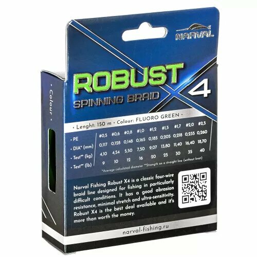 Отзывы на Плетёный шнур Narval Fishing Robust X4 PE 150m (fluoro green) #0.8/0.148mm 5.50kg/12lb