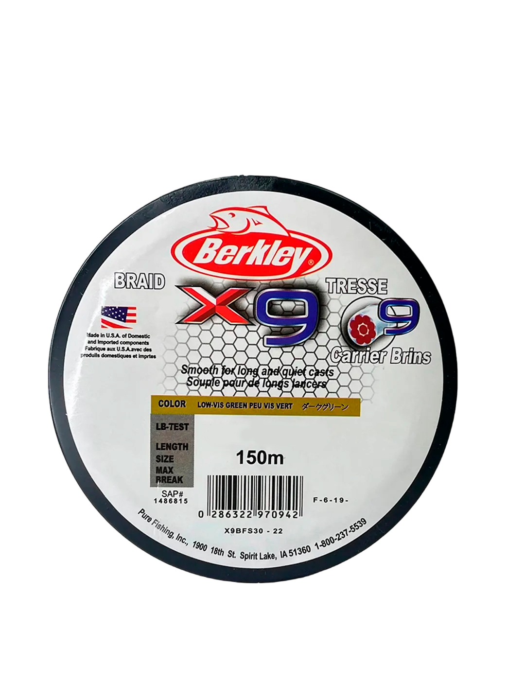Плетеный шнур для рыбалки Berkley X9 braid, 150 м, 0,30 мм, 32.4 кг, леска плетенка, леска для рыбалки 999 ₽