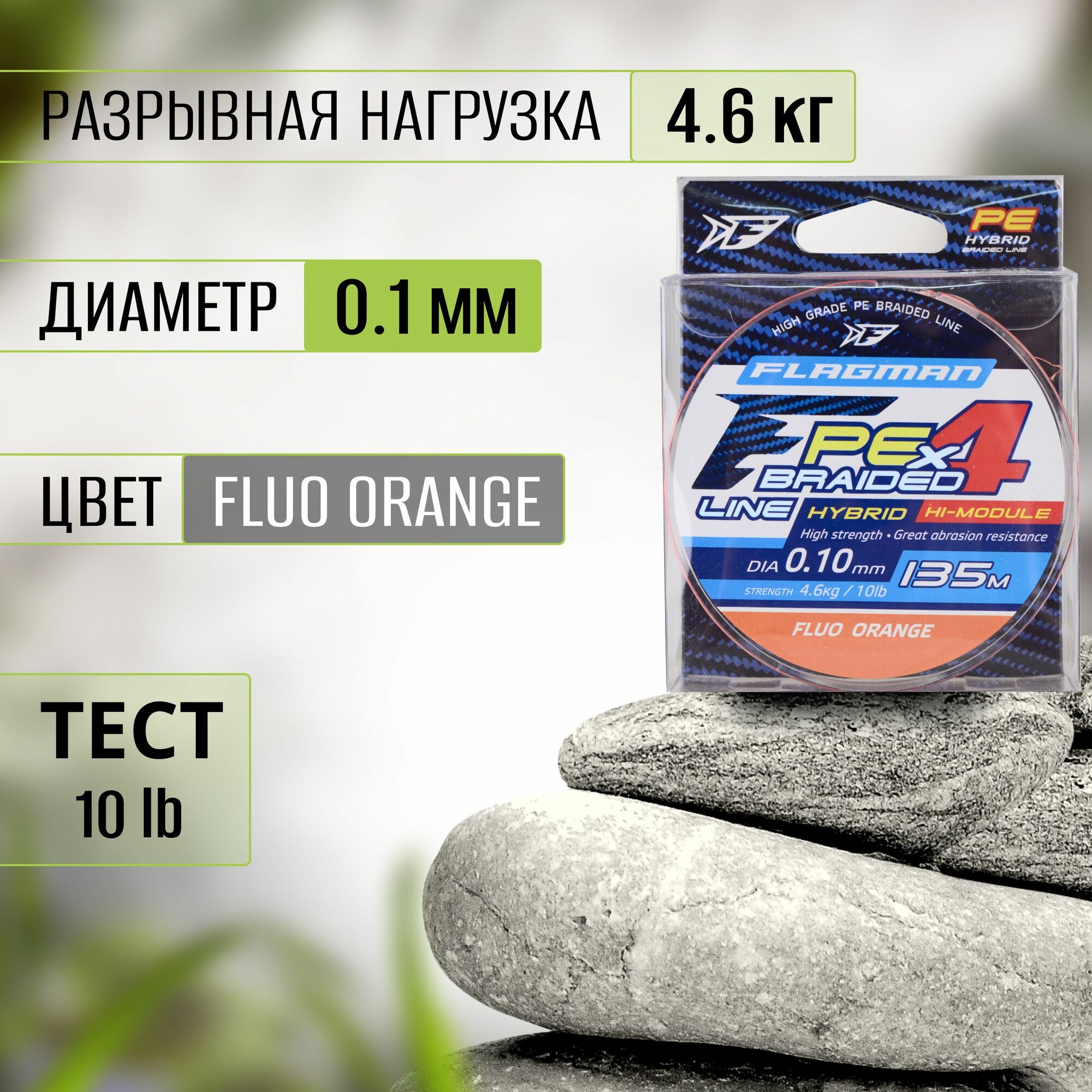 10 цен на FLAGMAN Шнур PE Hybrid F4 135м FluoOrange 0,10мм 4,6кг 10lb