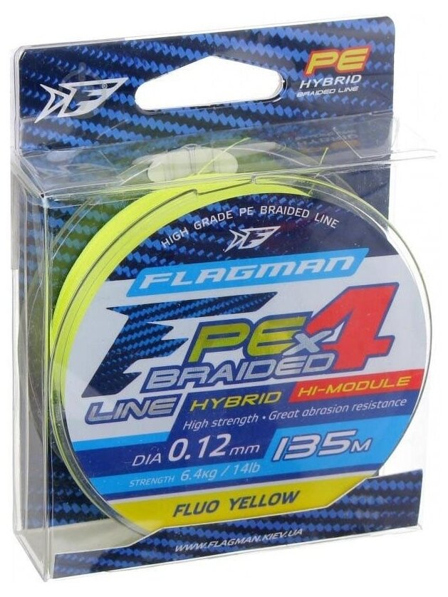 FLAGMAN Шнур PE Hybrid F4 135м FluoYellow 0,12мм 6,4кг 14lb информация: