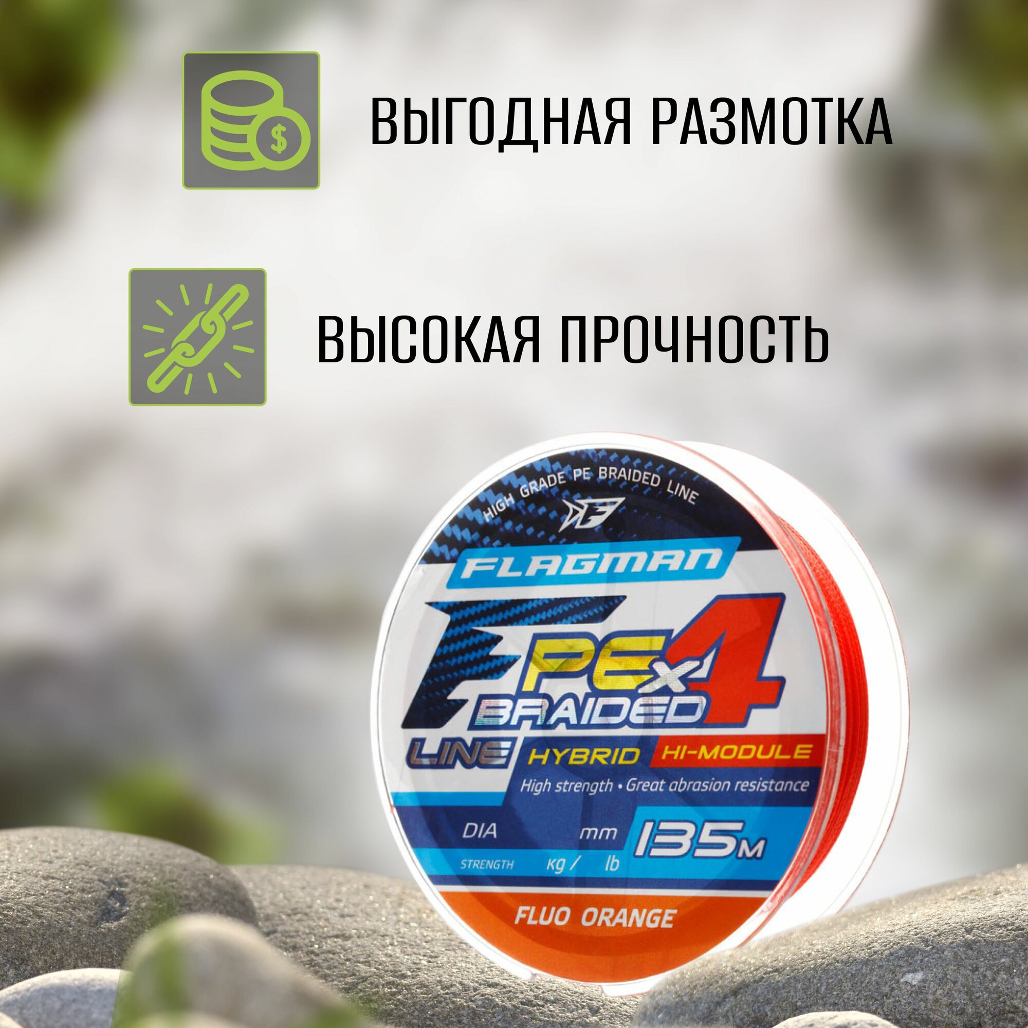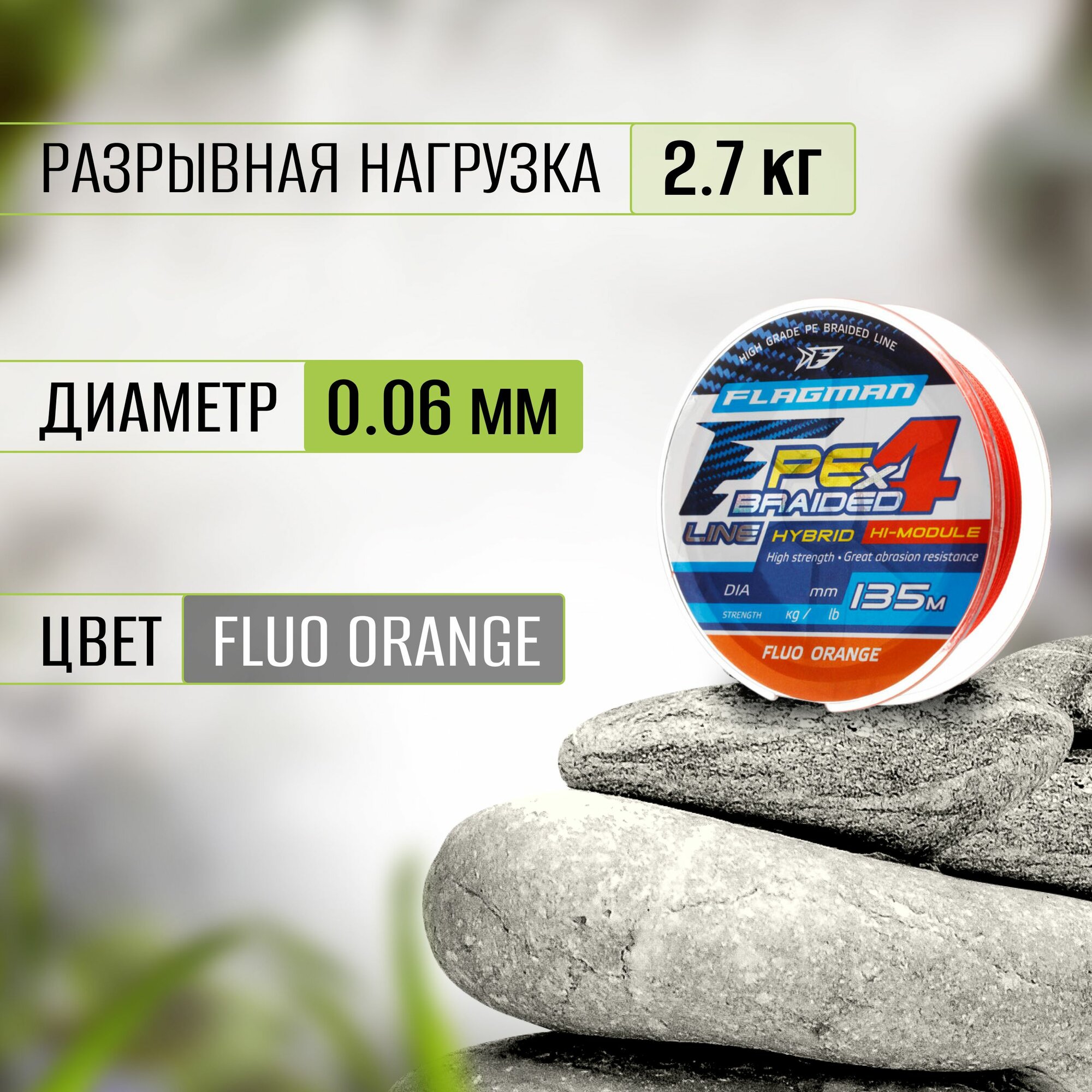 FLAGMAN Шнур PE Hybrid F4 135м FluoOrange 0,06мм 2,7кг 6lb информация:
