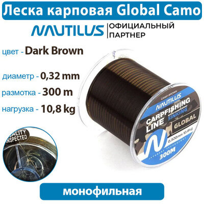 Леска карповая Nautilus Global Camo brown 0,32мм 10,8кг 300м информация: