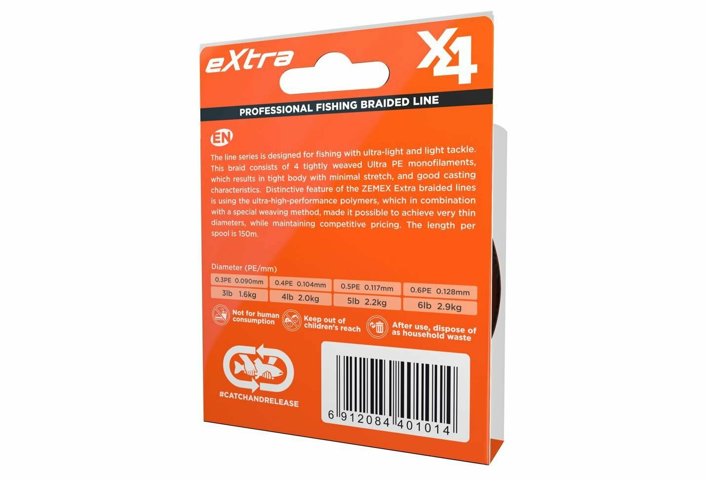 Плетеный шнур ZEMEX EXTRA x4 150 m, d 0.117 mm, orange информация: