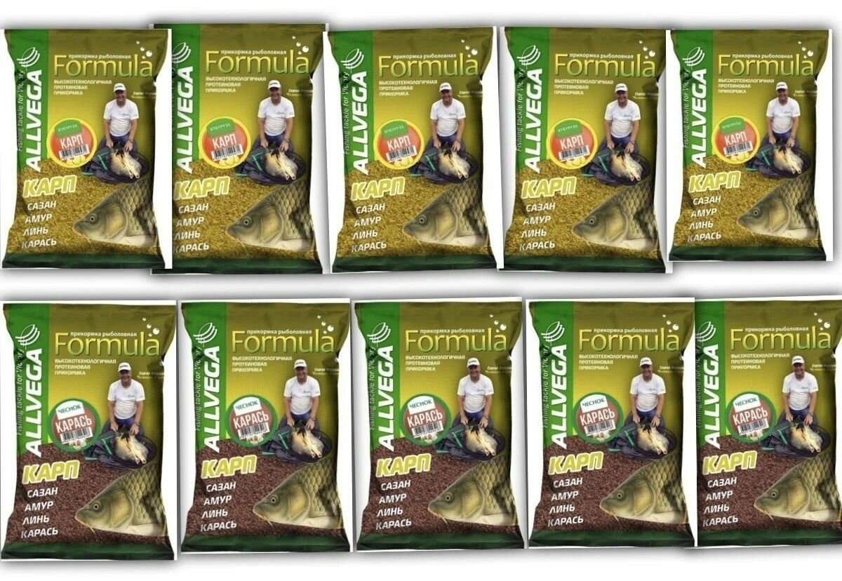 10 цен на Набор прикормки для рыбалки ALLVEGA Formula Карась чеснок, карп кукуруза 10 пачек по 0.9 кг