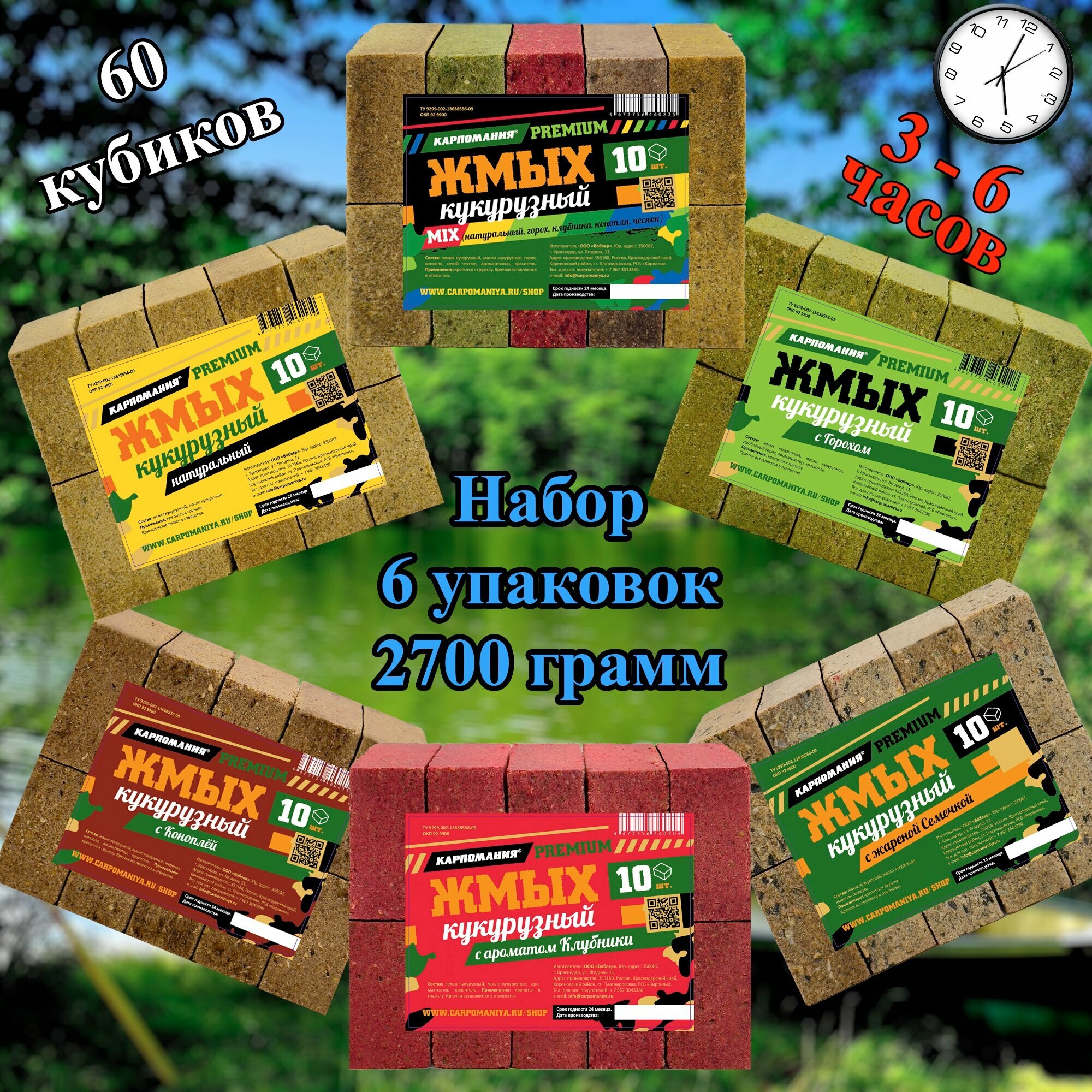 10 цен на Набор 6шт Жмых PREMIUM кукурузный mix, горох, семечка, клубника, конопля, натуральный 60шт