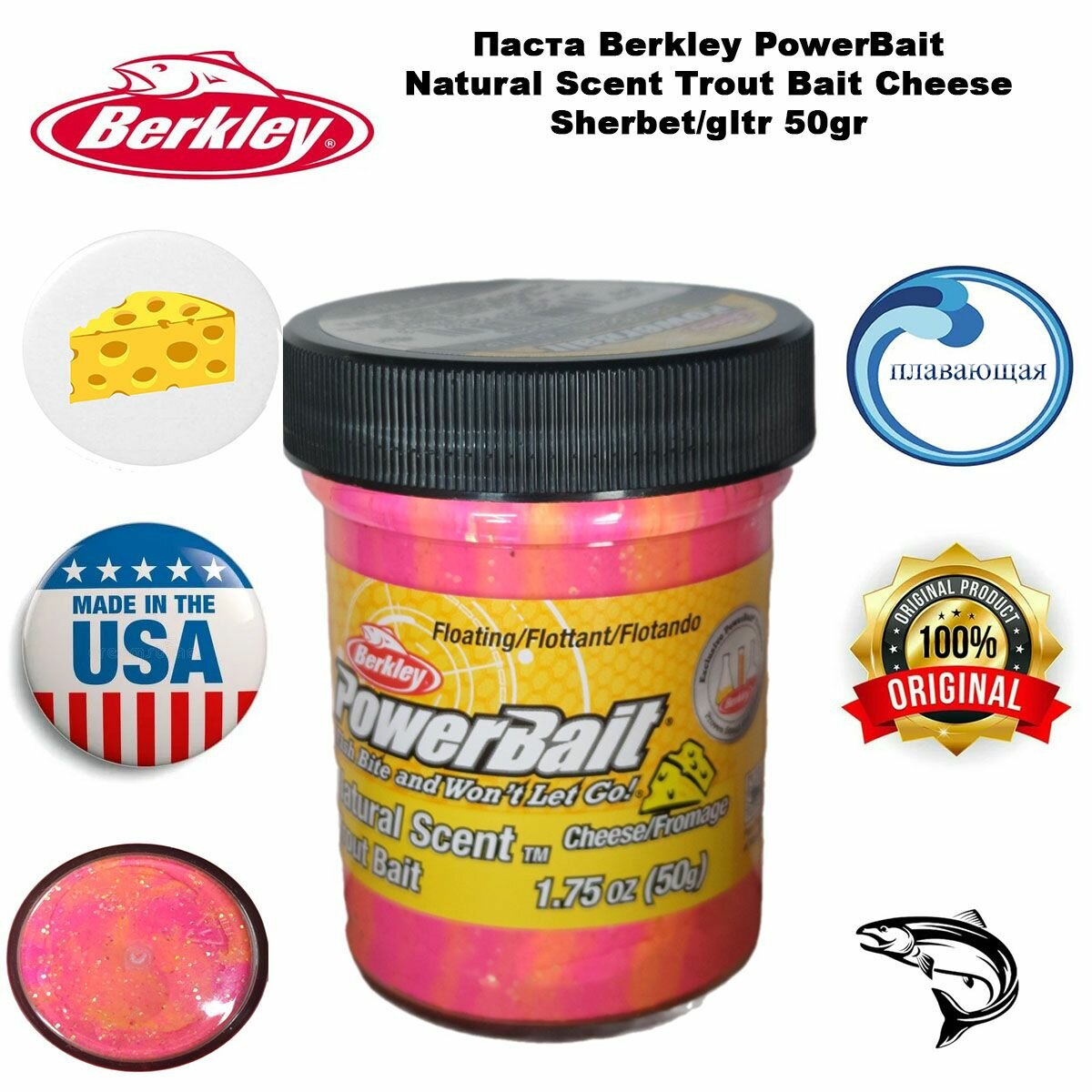 Паста Berkley PowerBait Natural Scent Trout Bait Cheese Sherbet/gltr 50g информация: