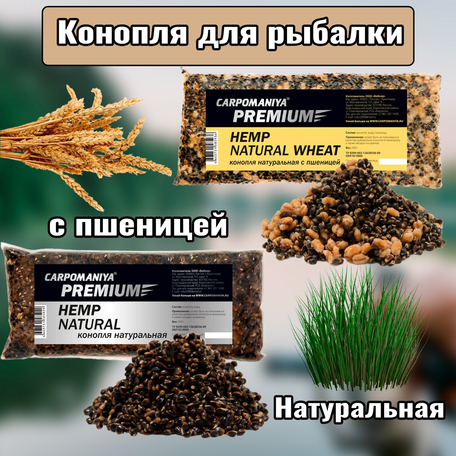 Набор 2шт серия PREMIUM конопля Натуральная + Натуральная с пшеницей 550г информация: