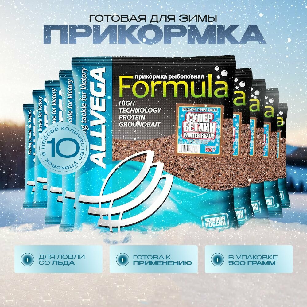10 цен на Прикормка для зимней рыбалки готовая ALLVEGA Formula Winter Ready супер бетаин набор 10 штук по 0.5 кг