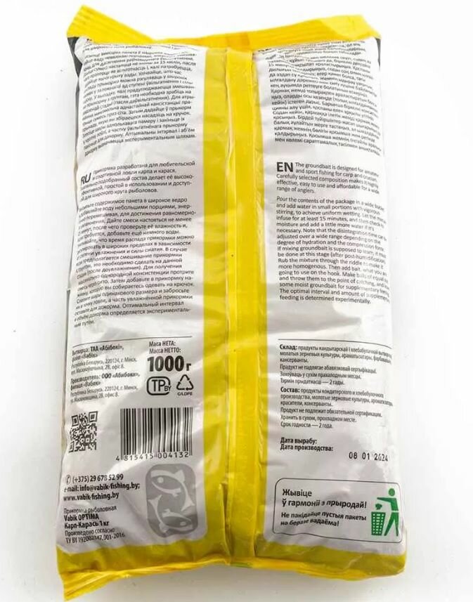 Прикормка VABIK Optima 1кг Карп-Карась 2 Упаковки информация:
