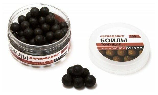 Тонущие бойлы со вкусом Мидии 14мм 100г банка информация: