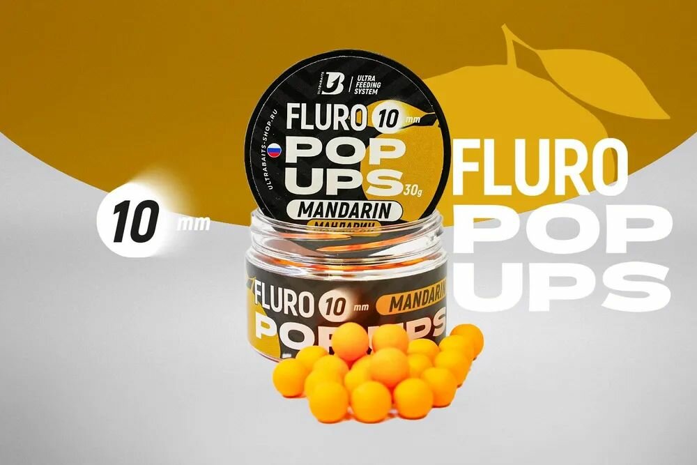 Бойлы плавающие FLURO POP UPS ULTRABAITS (мандарин) 10 мм, банка 30 гр. информация:
