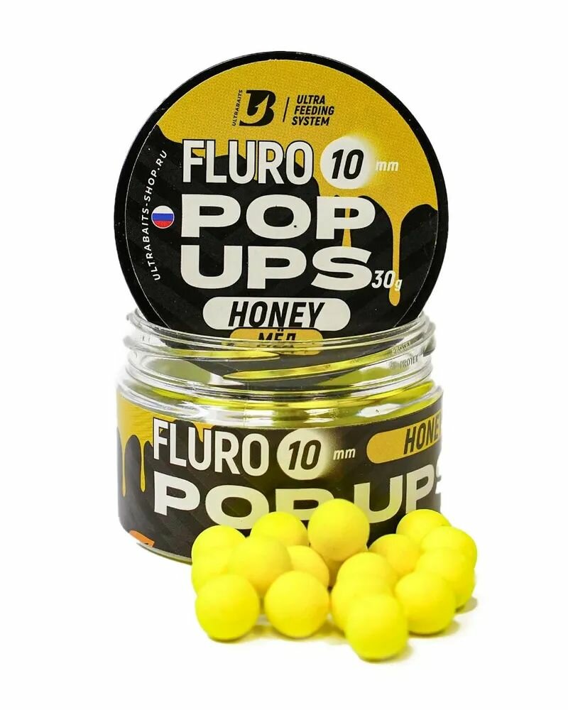 Бойлы плавающие FLURO POP UPS ULTRABAITS (МЁД) 10 мм, банка 30 гр. информация: