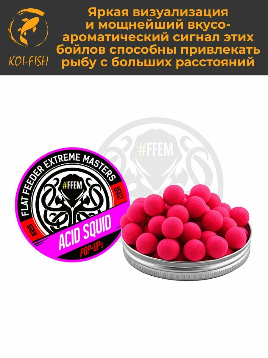 Плавающие бойлы FFEM POP-UP ACID SQUID 10мм, Кислый Кальмар, 50мл (55 штук), розовый, плавающие насадочные поп-апы информация: