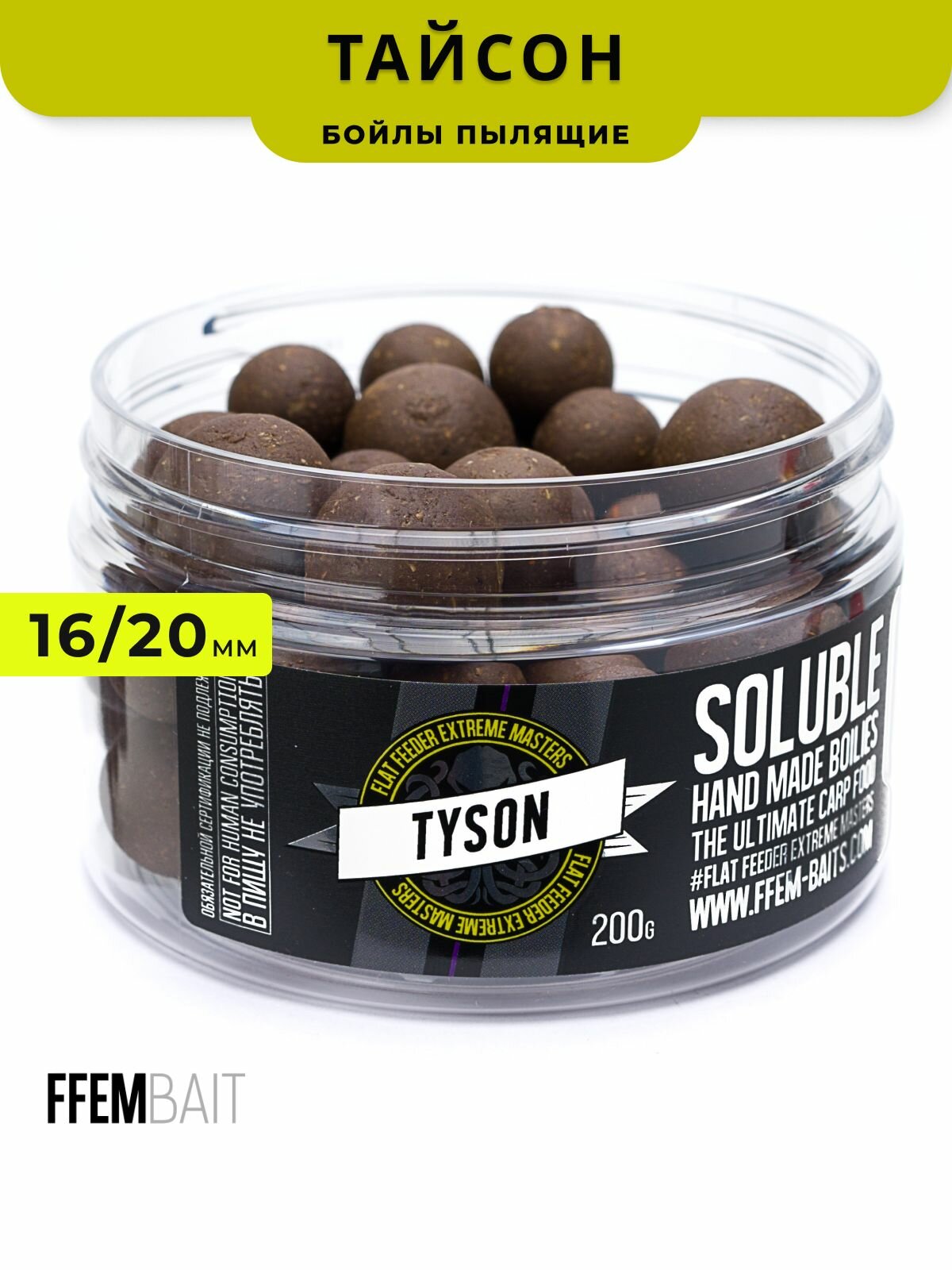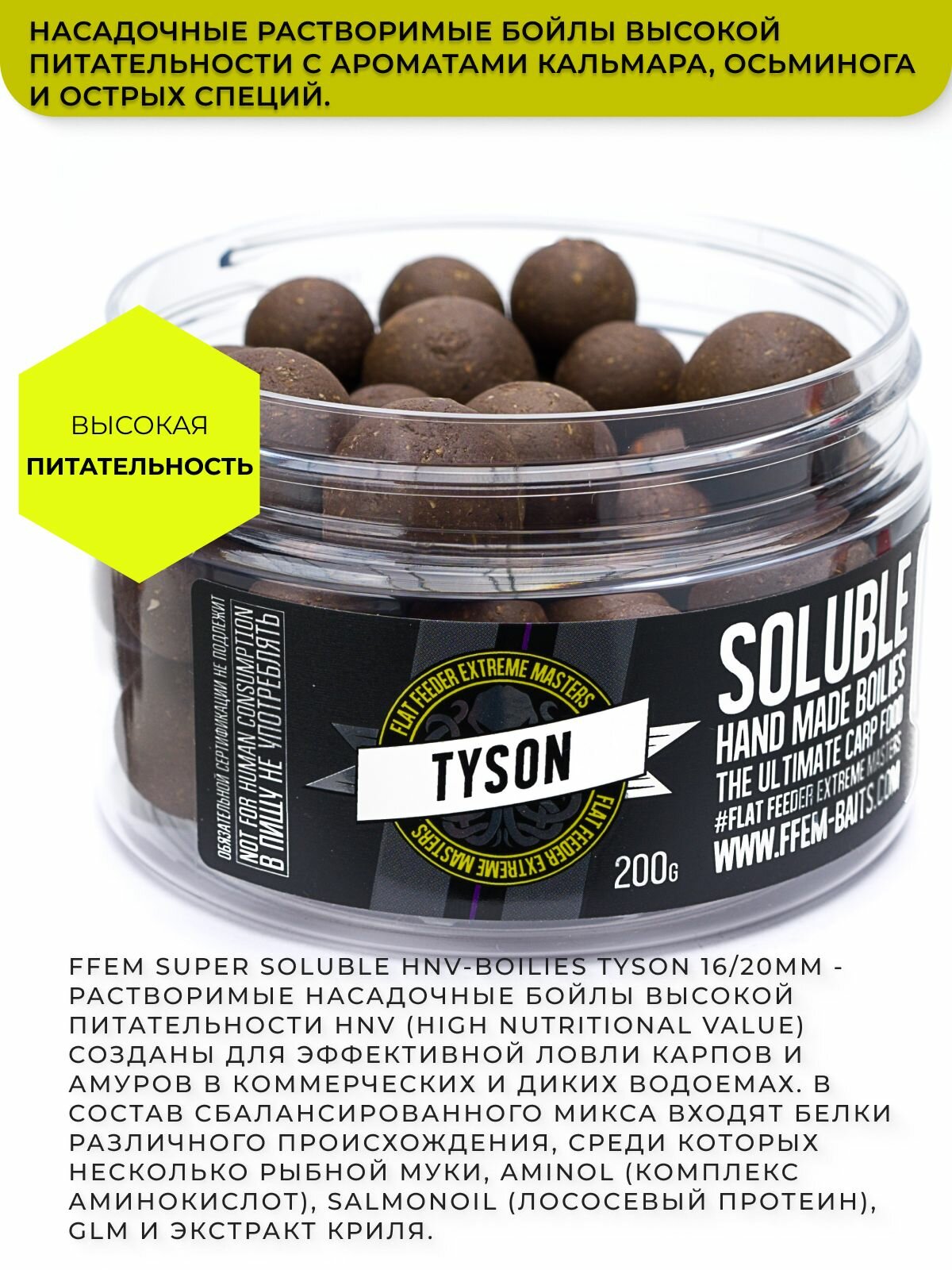 Насадочные пылящие бойлы FFEM Super Soluble Boilies HNV-Tyson (кальмар, осьминог и специи) 16/20mm информация: