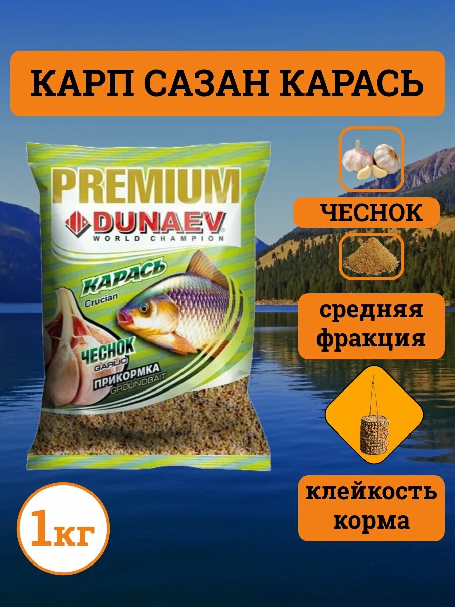 10 цен на Прикормка " DUNAEV - PREMIUM " 1кг Карп-Сазан с ароматом Чеснок