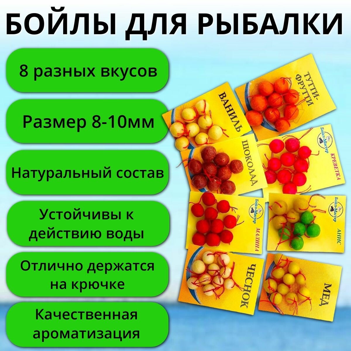 10 цен на Плавающие бойлы для рыбалки набор из 8 вкусов 8-10мм