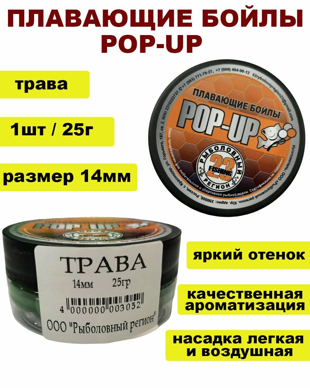 Плавающие бойлы "Pop-Up" для рыбалки "Трава" 14мм / 25г. информация: