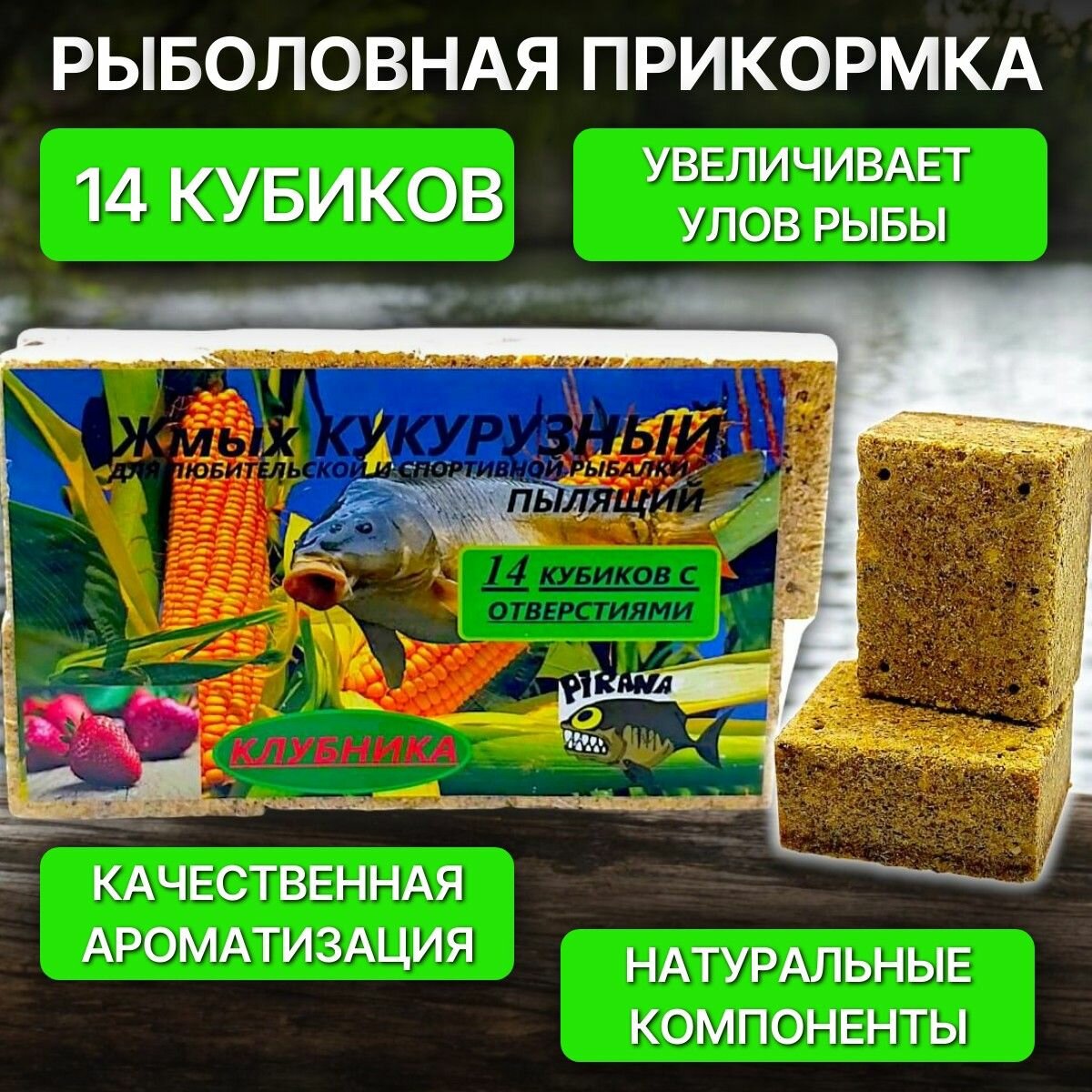 Кукурузный жмых-макуха с отверстиями для крючка "Клубника" 10 кубиков / 320г 511 ₽