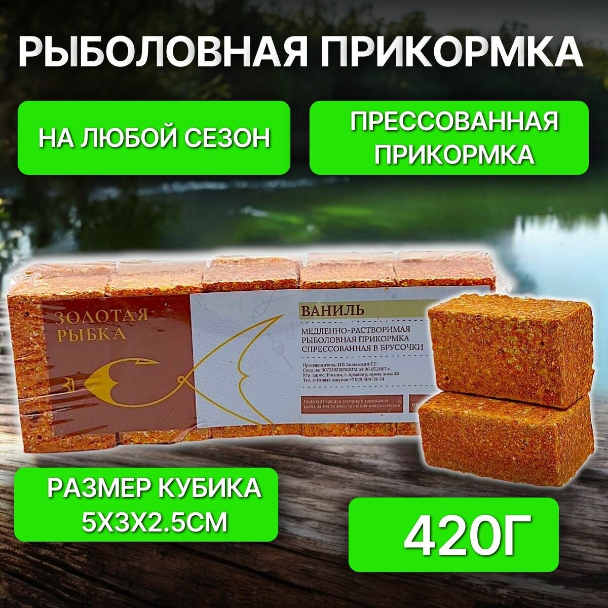 Жмых медленно-растворимый с отверстиями для крючка "Ваниль" 10 кубиков / Золотая рыбка информация: