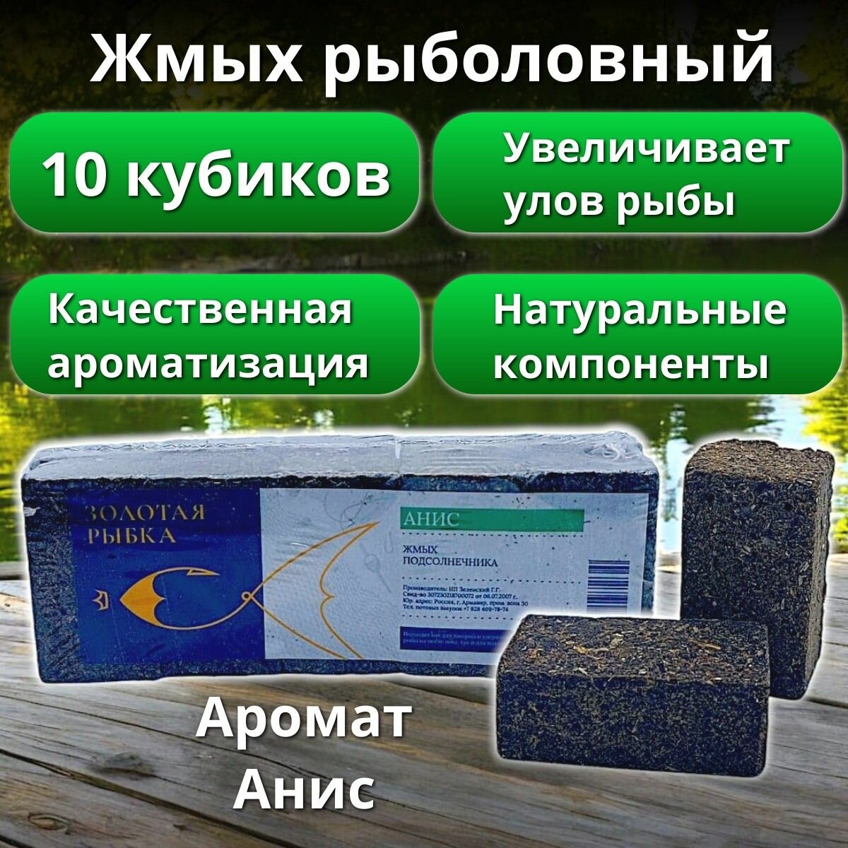 10 цен на Жмых подсолнечника с отверстиями для крючка "Анис" 10 кубиков / Золотая рыбка