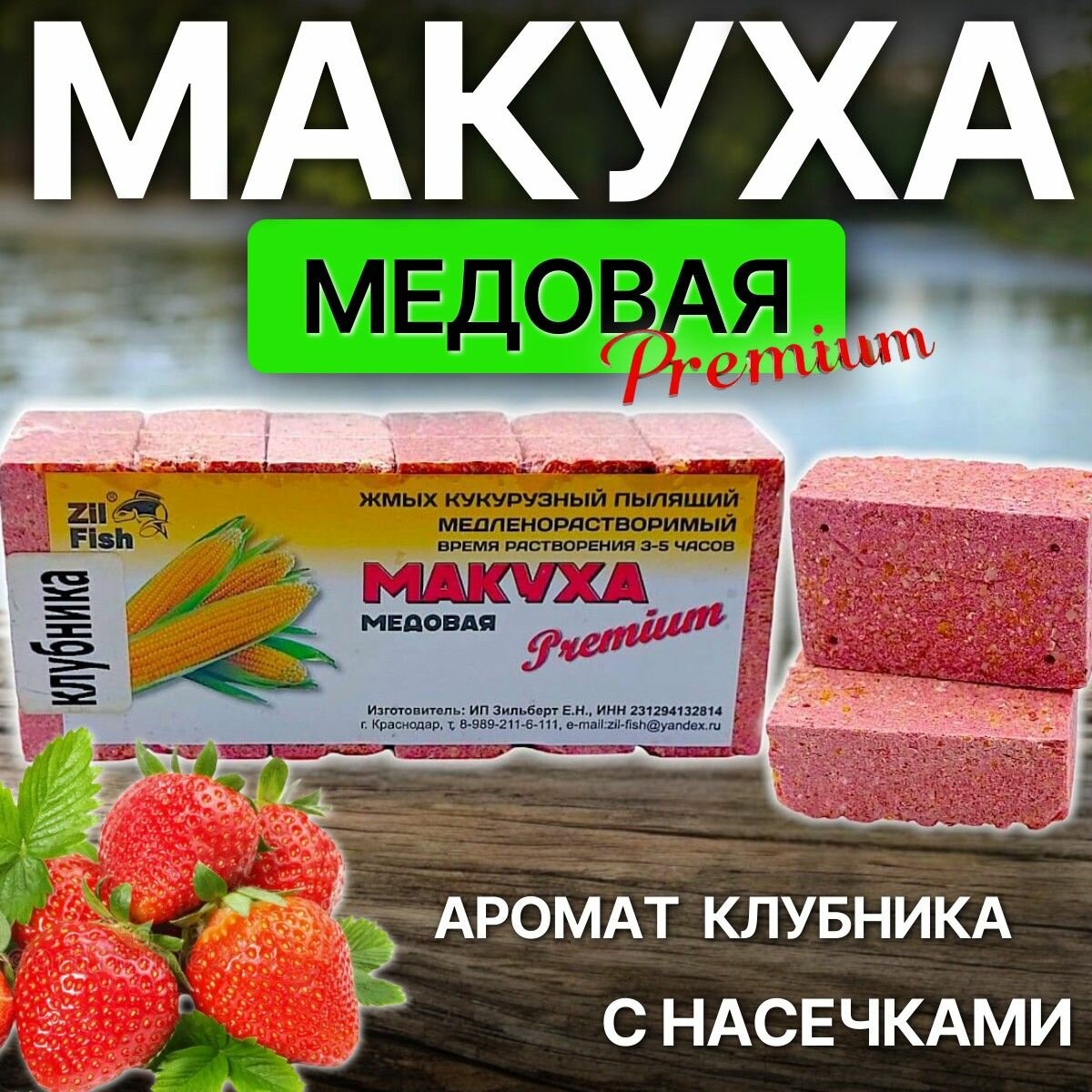 Макуха медовая медленно-растворимая с отверстиями для крючка "Клубника" 6 кубиков информация: