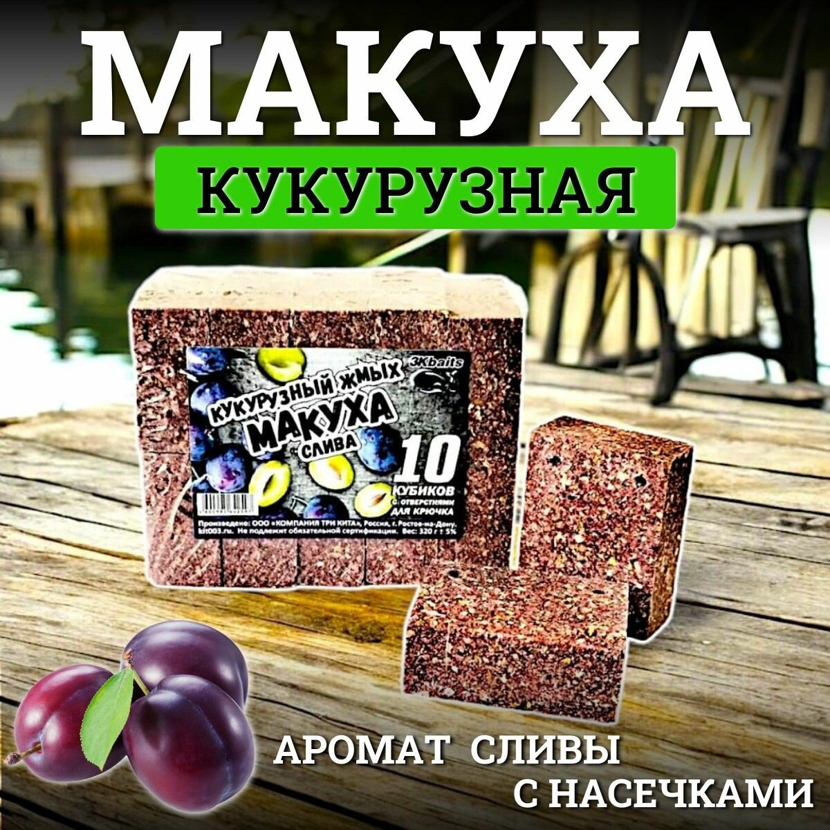10 цен на Кукурузный жмых-макуха с отверстиями для крючка "Слива" 10 кубиков / 320г