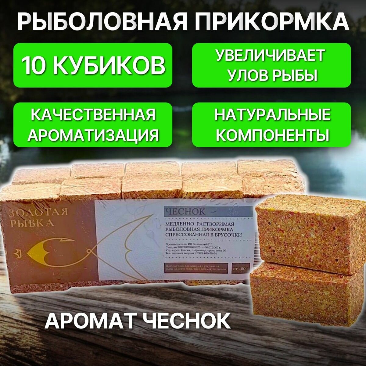 10 цен на Жмых медленно-растворимый с отверстиями для крючка "Чеснок" 10 кубиков / Золотая рыбка