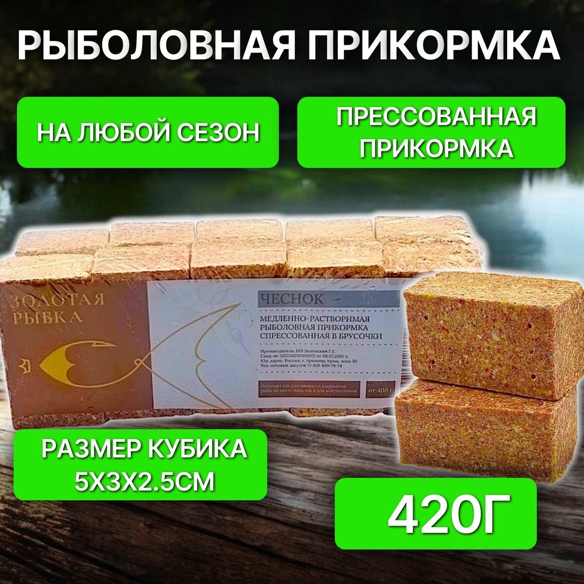 Жмых медленно-растворимый с отверстиями для крючка "Чеснок" 10 кубиков / Золотая рыбка информация:
