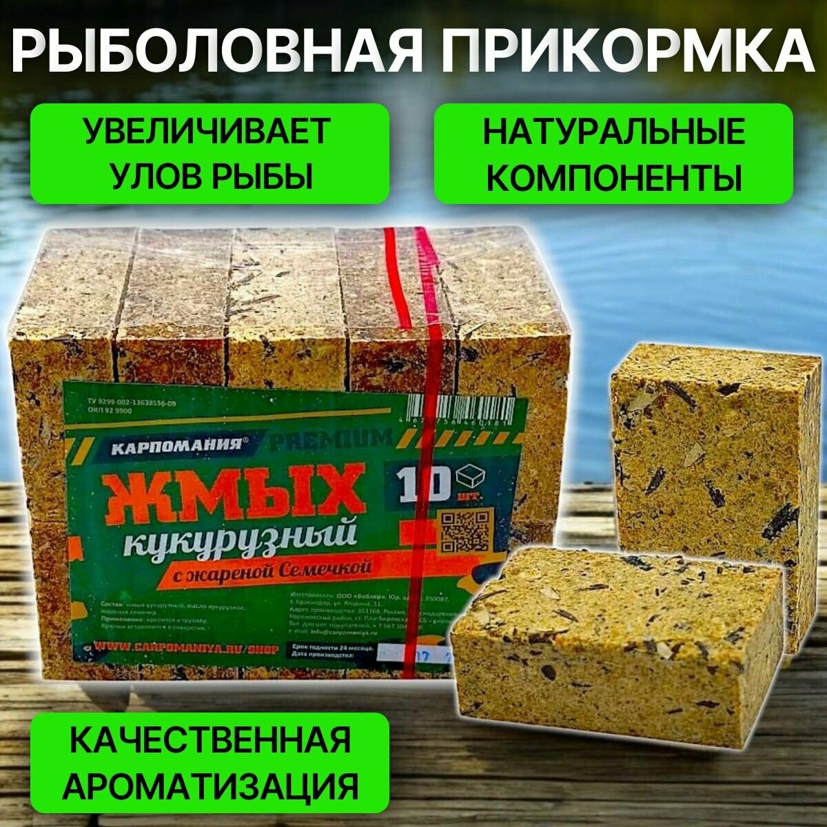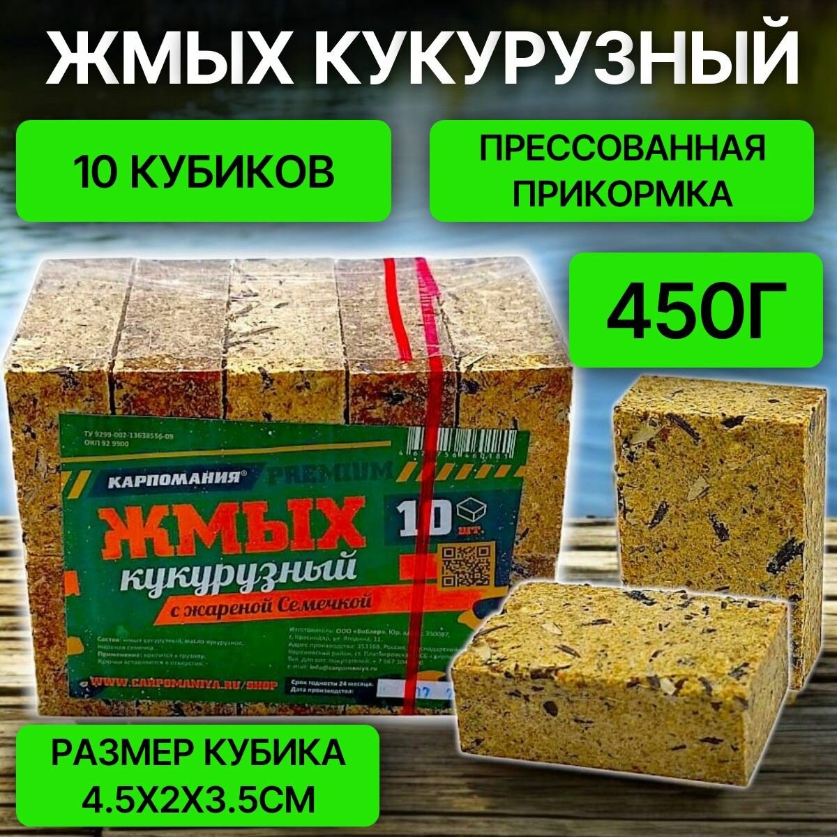 Жмых кукурузный Карпомания Premium "Жареная семечка" 10 кубиков информация: