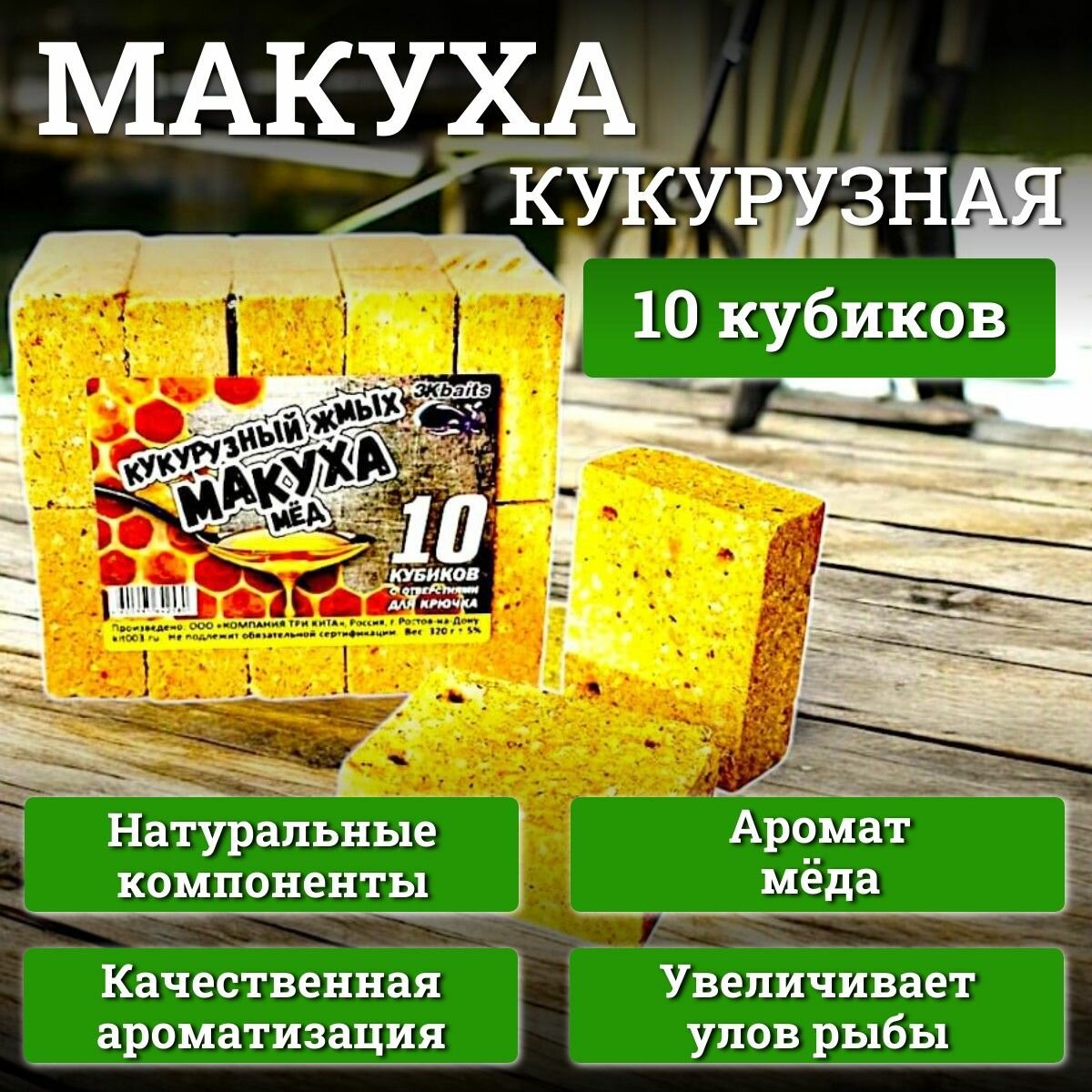 10 цен на Кукурузный жмых-макуха с отверстиями для крючка "Мёд" 10 кубиков / 320г