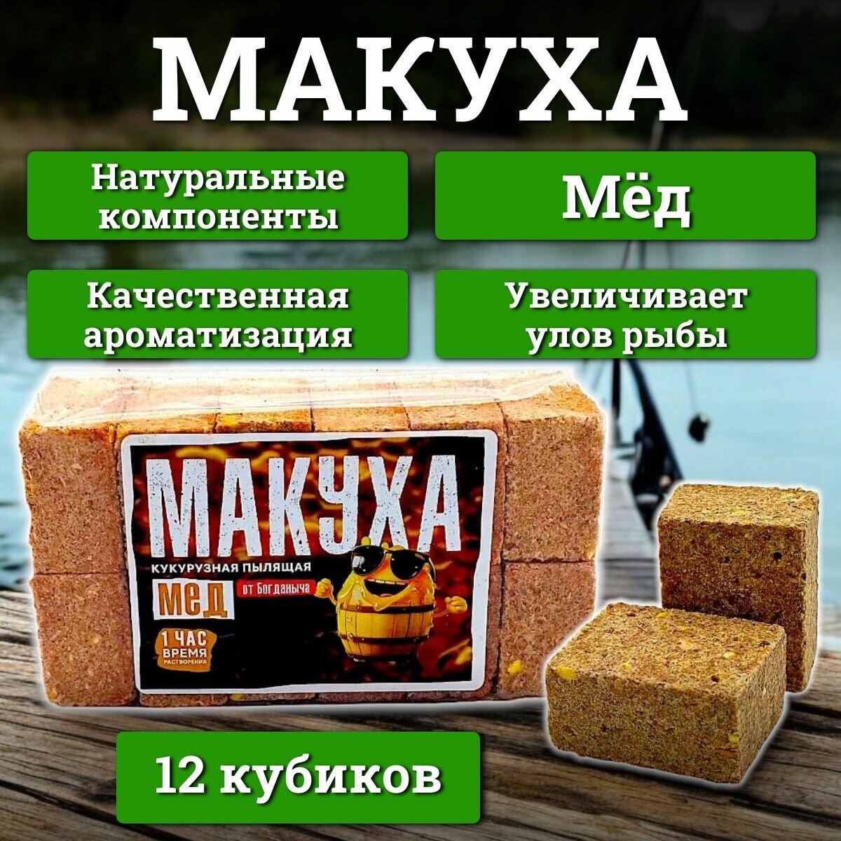 Макуха пылящая с отверстиями для крючка от Богданыча "Мёд" 12 кубиков информация: