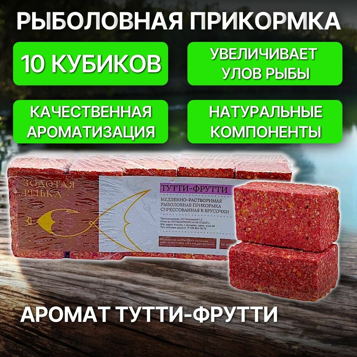 10 цен на Жмых медленно-растворимый с отверстиями для крючка "Тутти-Фрутти" 10 кубиков / Золотая рыбка
