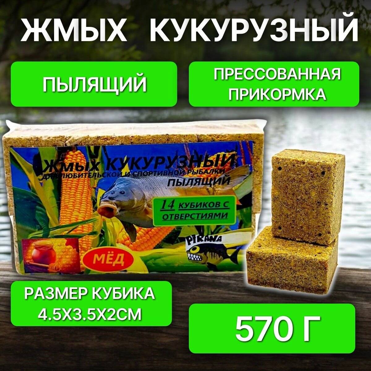 Кукурузный жмых-макуха с отверстиями для крючка набор - Кукуруза, Горох, Чеснок, Мёд, 40 кубиков 1 087 ₽