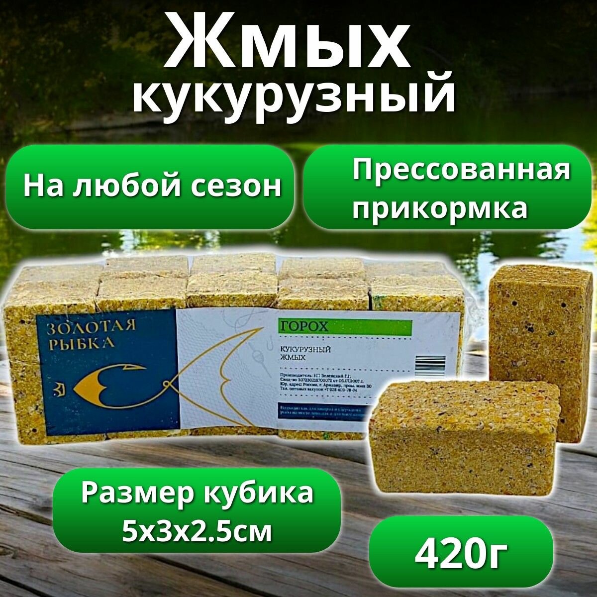 Кукурузный жмых-макуха с отверстиями для крючка "Горох" 10 кубиков / 320г 482 ₽