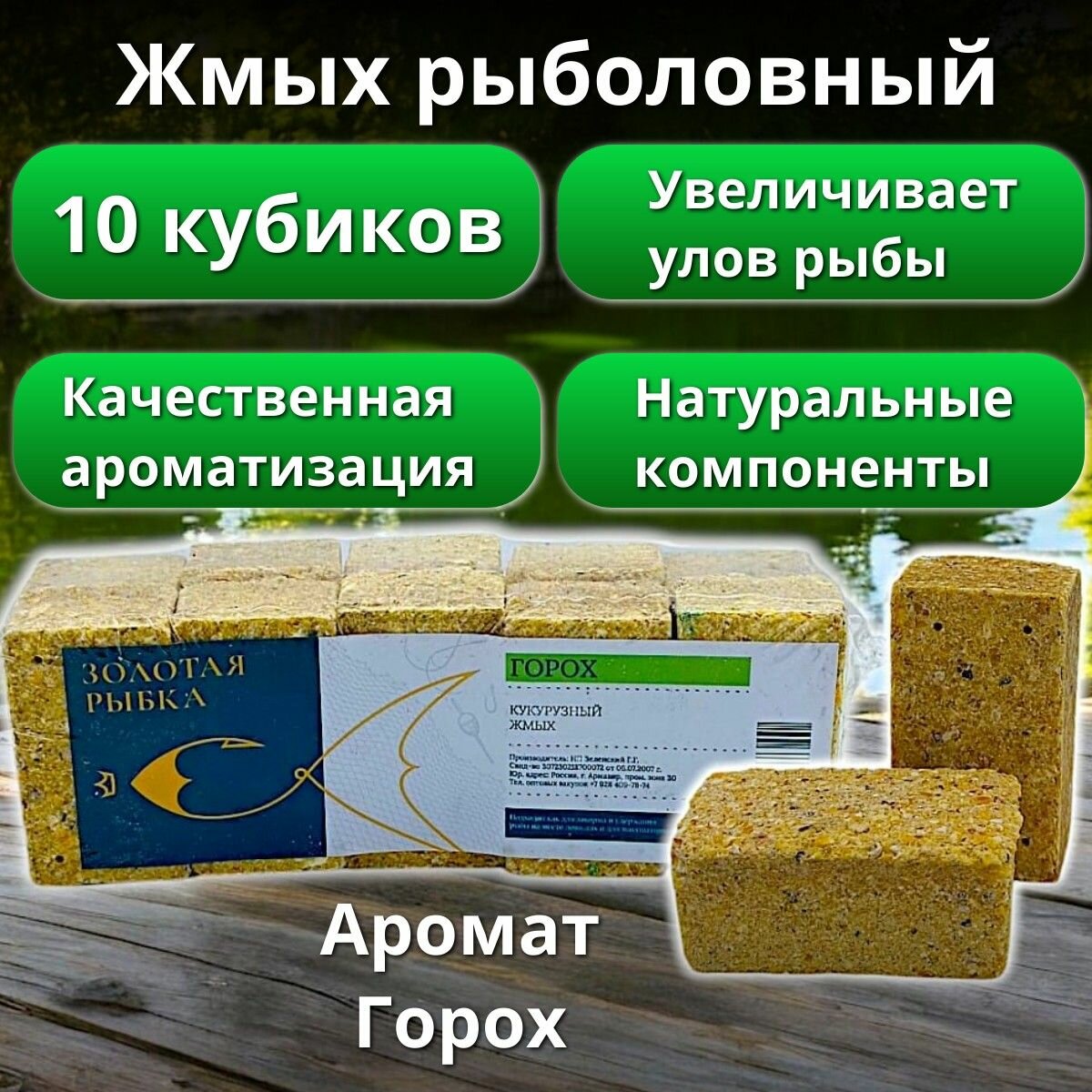 10 цен на Кукурузный жмых с отверстиями для крючка "Горох" 10 кубиков / Золотая рыбка