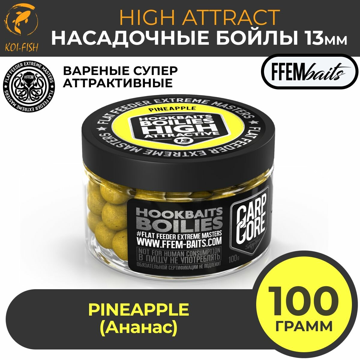 10 цен на Бойлы насадочные варёные HOOKBAITS BOILIES HIGH ATTRACT Pineapple (Ананас) 13 мм / тонущие аттрактивные HIGH Attractive 13mm