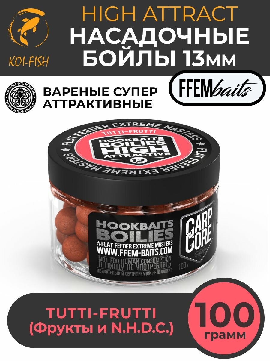 10 цен на Бойлы насадочные варёные HOOKBAITS BOILIES HIGH ATTRACT Tutti-Frutti (Тутти-фрутти) 13 мм / тонущие аттрактивные HIGH Attractive 13mm