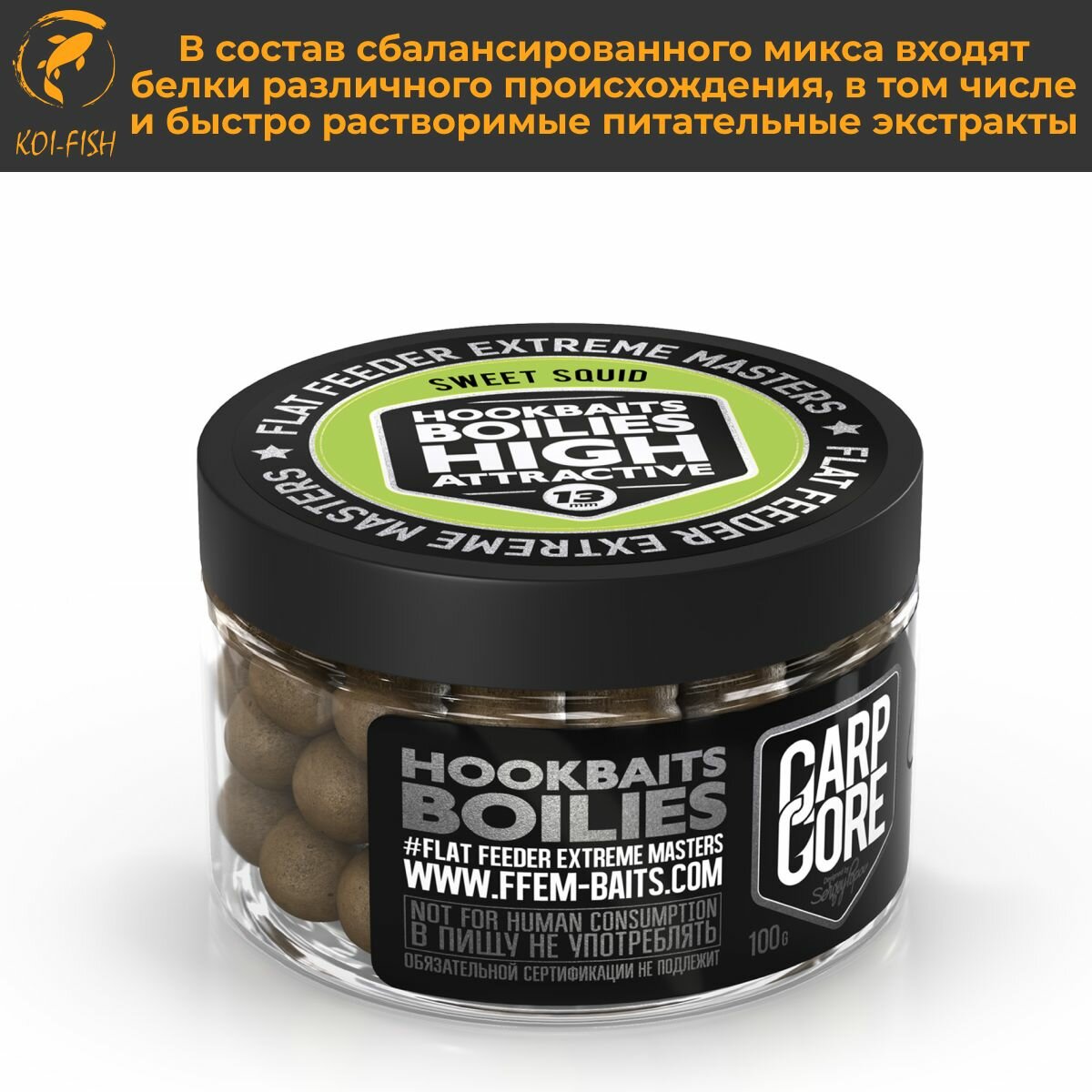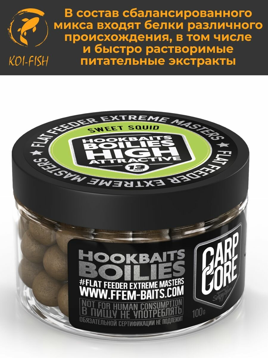 10 цен на Бойлы насадочные варёные HOOKBAITS BOILIES HIGH ATTRACT Sweet Squid (Кальмар и фрукты) 13 мм / тонущие аттрактивные HIGH Attractive 13mm