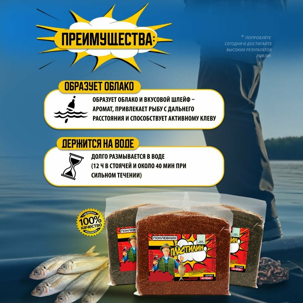 Пластилин рыболовный с пылящим эффектом 3000 гр. Мотыль, клубника, конопля/ готовая натуральная прикормка для рыбалки информация: