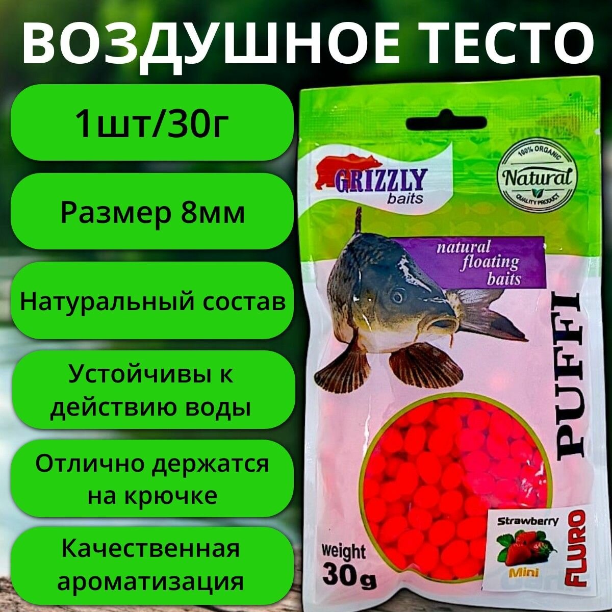 Воздушное тесто для рыбалки Puffi "Клубника" - 6-8мм / 30г 451 ₽