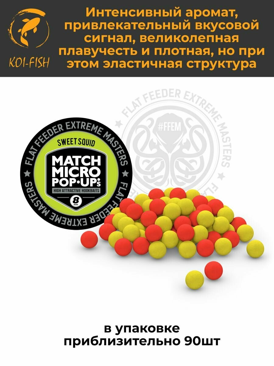 10 цен на Плавающие бойлы Match Micro POP-UP 8 мм Sweet Squid Кальмар и фрукты, насадочные поп-ап / FFEM Pop-Up Micro 8mm