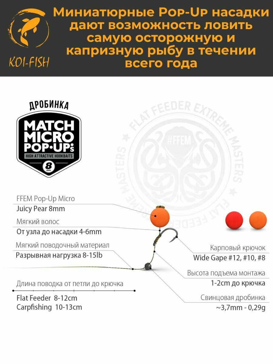 Плавающие бойлы Match Micro POP-UP 8 мм Juicy Pear сочная груша, насадочные поп-ап / FFEM Pop-Up Micro 8mm информация: