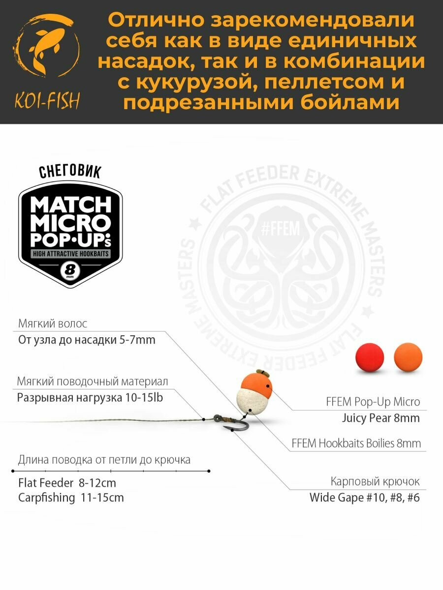 Отзывы на Плавающие бойлы Match Micro POP-UP 8 мм Juicy Pear сочная груша, насадочные поп-ап / FFEM Pop-Up Micro 8mm