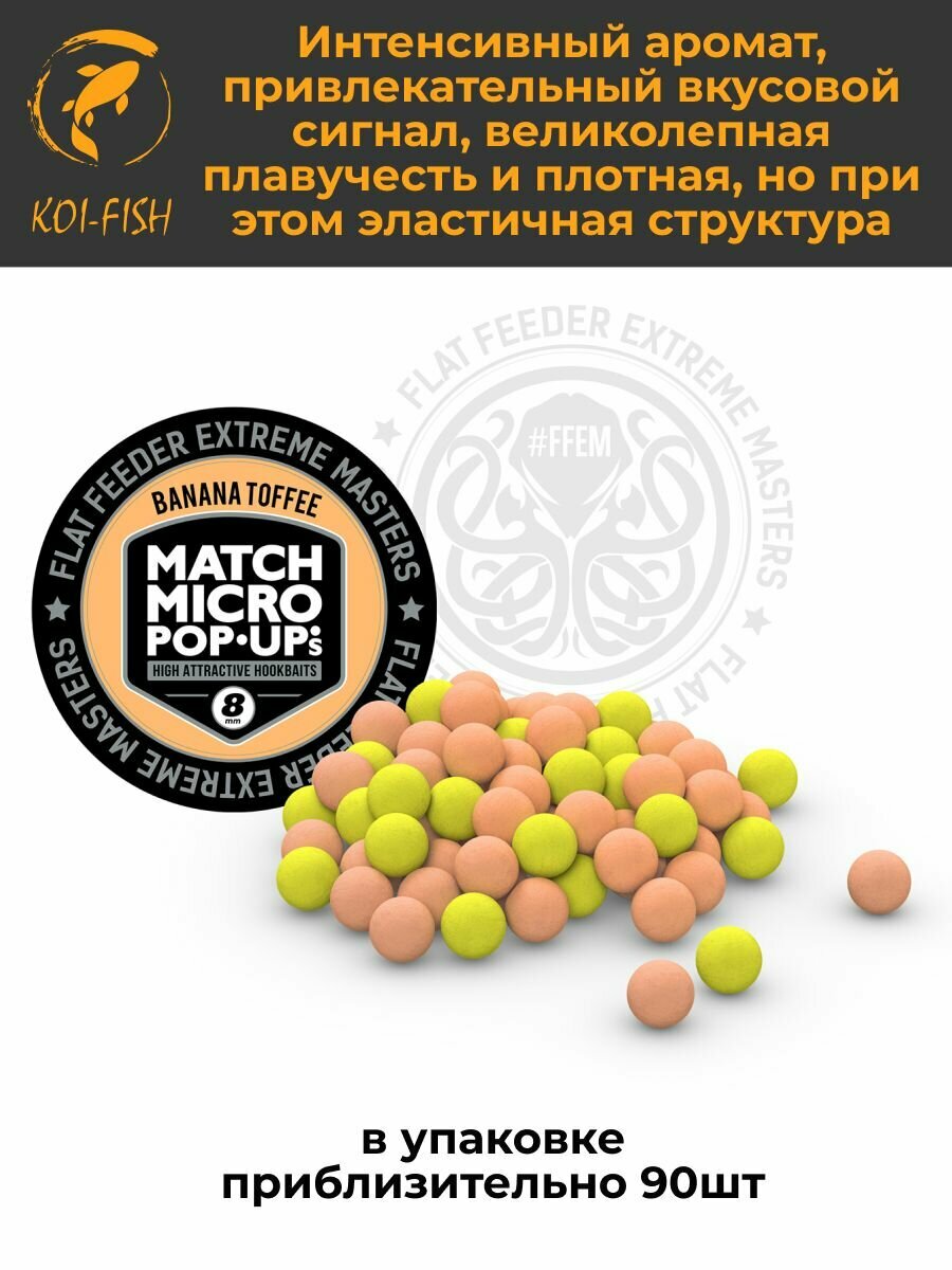 Плавающие бойлы Match Micro POP-UP 8 мм Banana Toffee Банановая ириска, насадочные поп-ап / FFEM Pop-Up Micro 8mm, Банан информация: